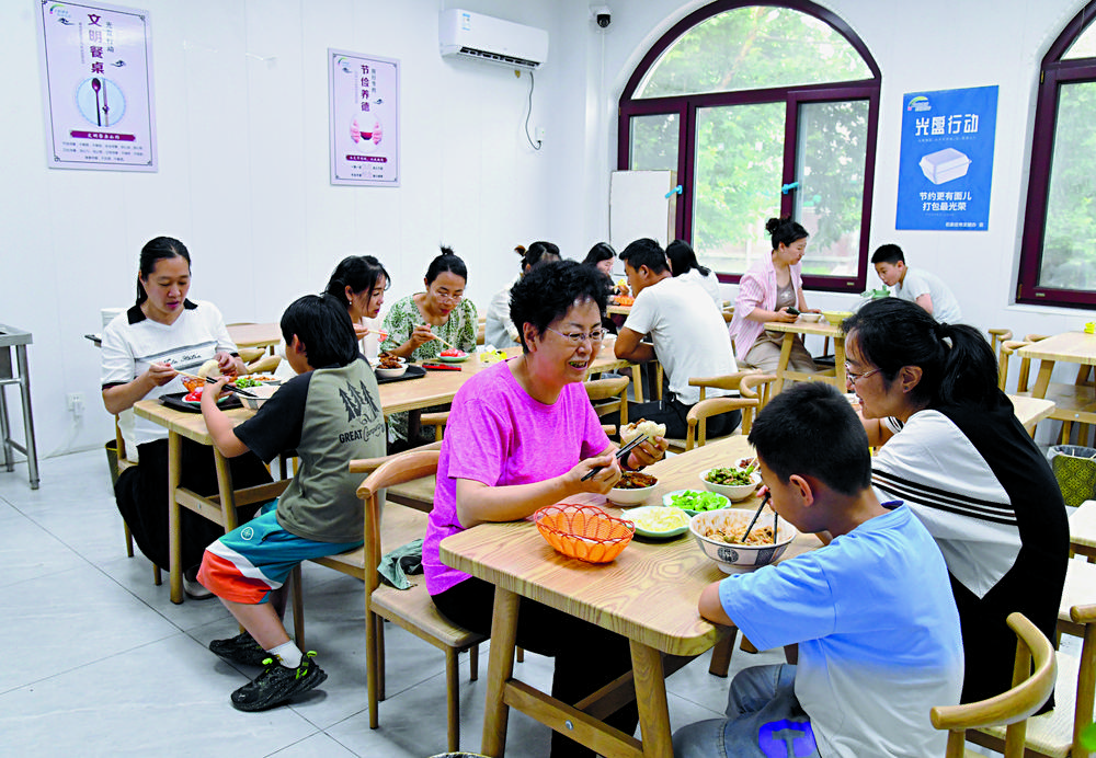 ▲在石家庄市新华区万信社区怡家惠民食堂,居民在品尝可口的饭菜。首席记者 张 震 摄