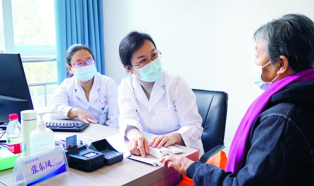 ▲在石家庄市第三医院,来自北京安贞医院的心脏病专家张东凤(中)在为患者诊断。首席记者 张 震 摄