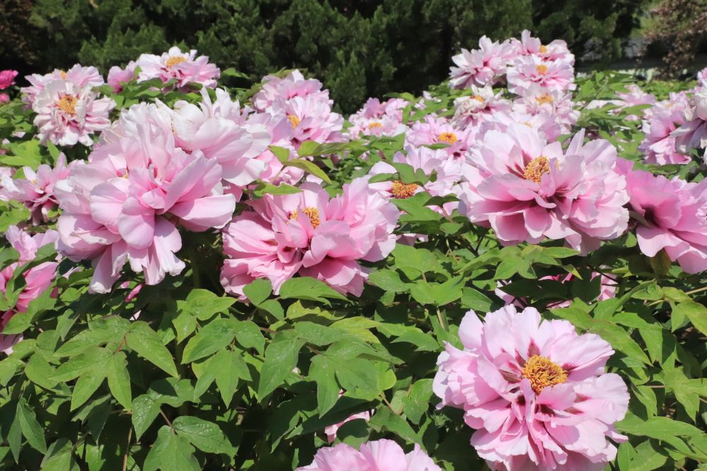 花农李海中天蒙蒙亮就入园忙碌,50多亩的大田牡丹今年开得格外艳丽,一些品种的牡丹一花双色,引得游客驻足。特别是100多株百年牡丹盛开正艳,株高在1.5米至2米之间,花冠最大的一株盛开着300多朵,让游客惊叹不绝。“谷雨前后的牡丹最精神,这是老天爷定下的花期。”李海中笑着说。