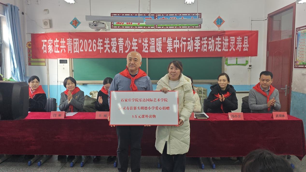 1月23日上午,石家庄共青团关爱青少年“送温暖”集中行动季暨“情系校园·爱暖童心”爱心助学活动走进灵寿县寨头明德小学。