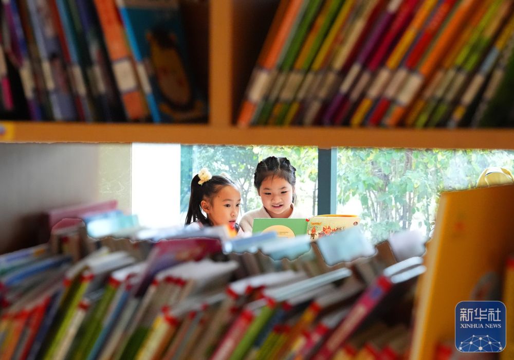 ↑ 2月8日,江苏省泰兴市新时代文明实践中心羽惠书房内,小朋友在看书。新华社发(顾继红摄)