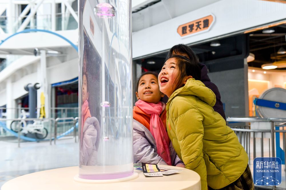 ↑ 2月6日,小朋友在江苏泰州科技馆体验科学实验装置。新华社发(杨玉岗摄)