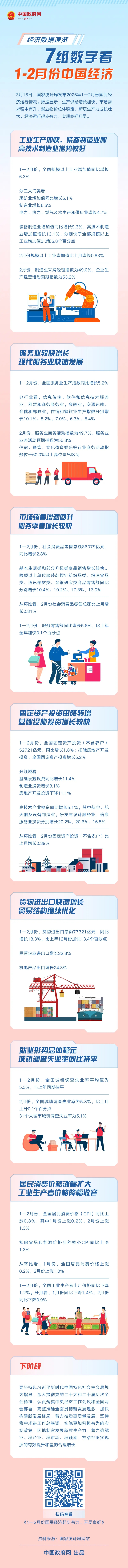 7组数字看1—2月份中国经济