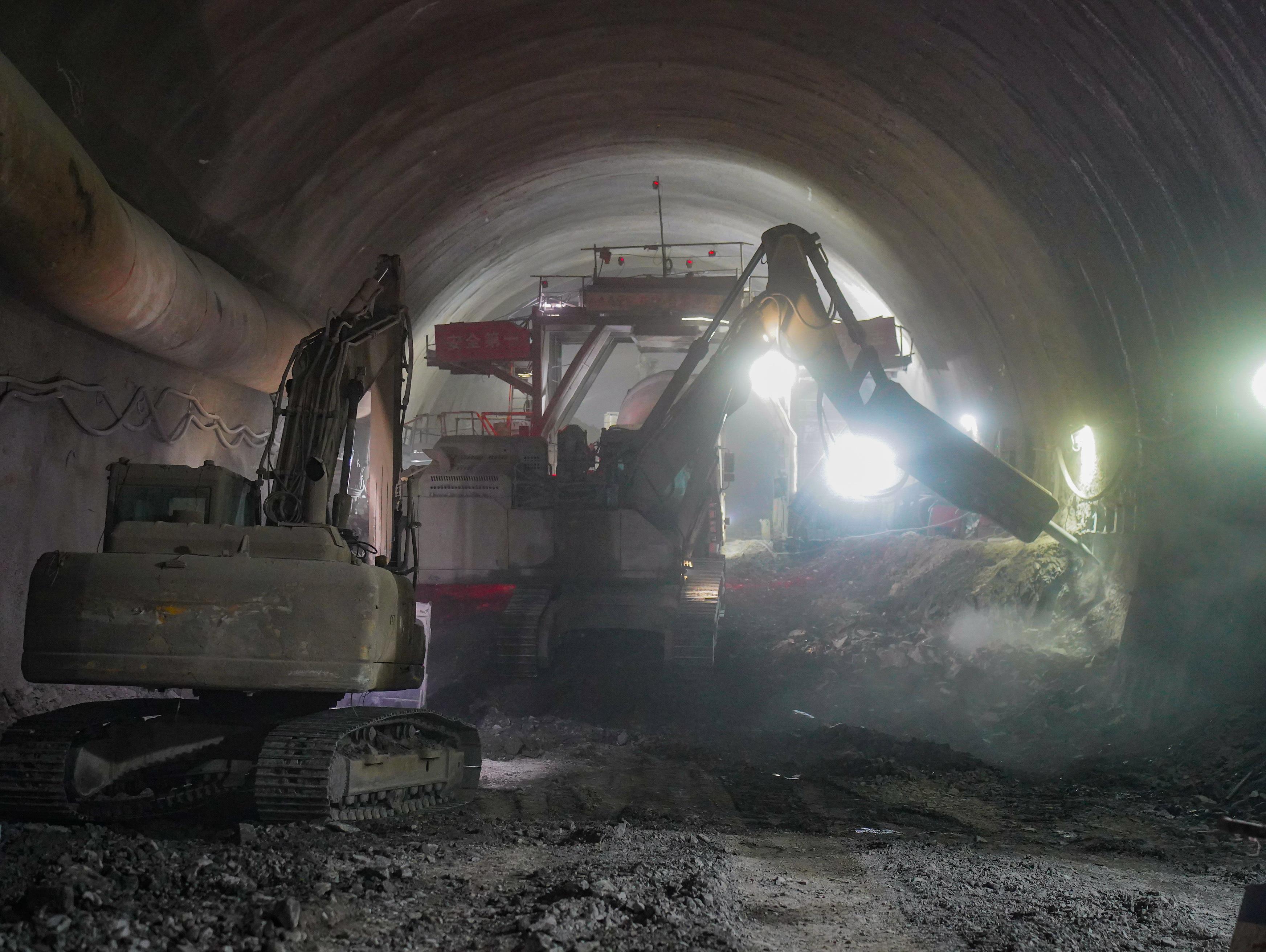 合川东隧道全长7388米,为单洞双线隧道。隧址区域含大量盐溶角砾岩孤石夹泥地质,不良地质呈现出泥质胶结、遇水易软化、孤石含量大,围岩稳定性差且Ⅳ、Ⅴ级围岩占比高达96.7%,为全线Ⅱ级风险隧道之一。为保障该隧道施工安全和进度,施工方中铁十四局设置进口、出口、进口斜井、出口斜井及进出口泄水洞等6个作业面进行同步施工,积极展开技术攻关与科技创新。