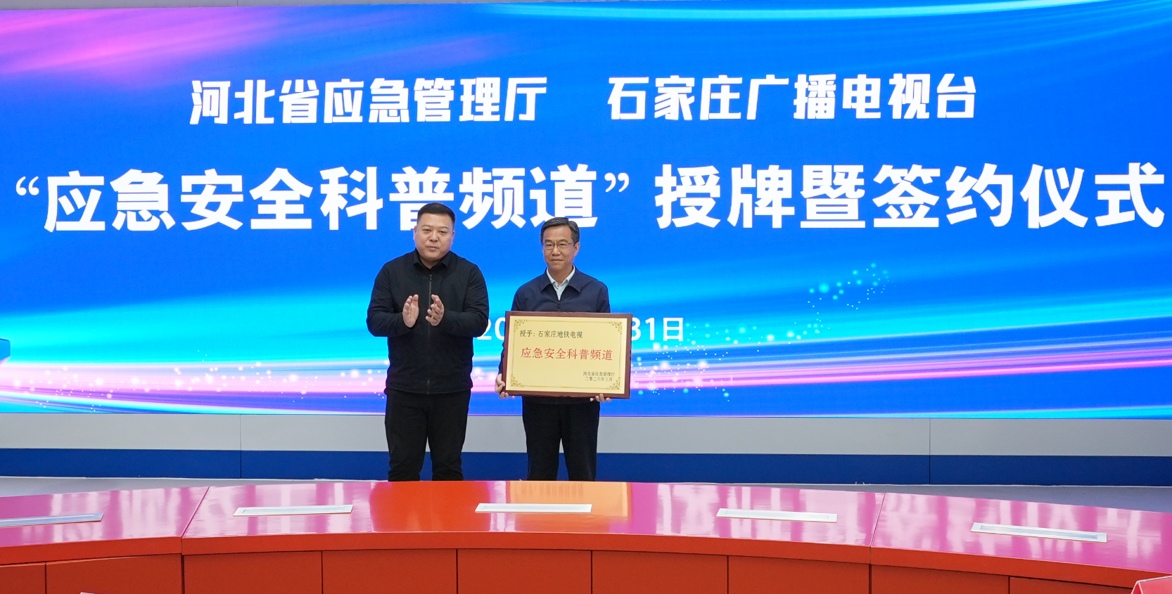 3月31日上午,河北省应急管理厅正式授牌石家庄广播电视台地铁电视“应急安全科普频道”,开拓了应急安全移动场景宣传新平台。