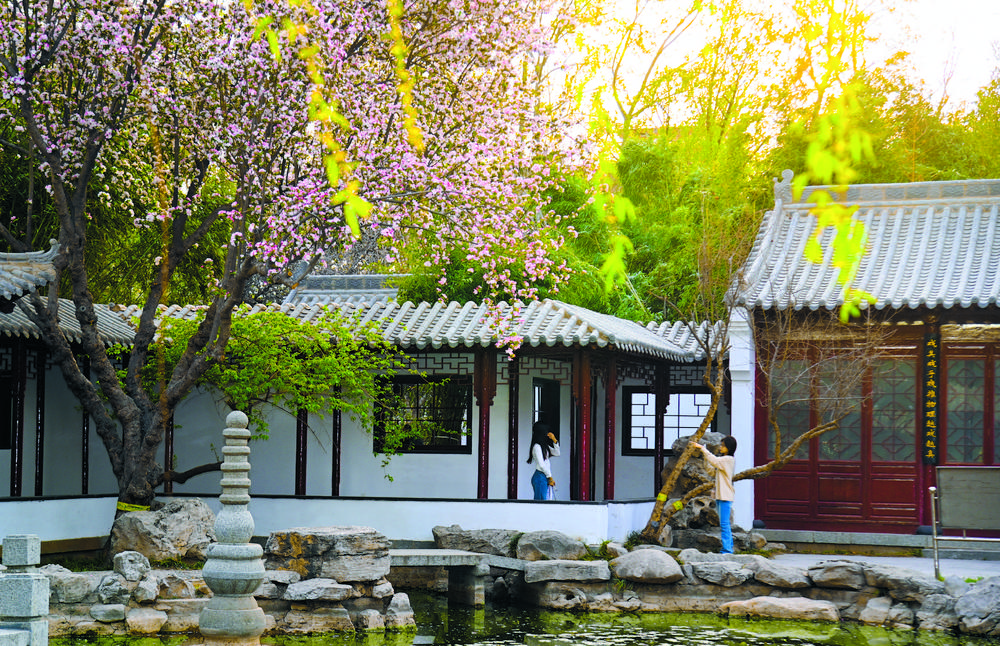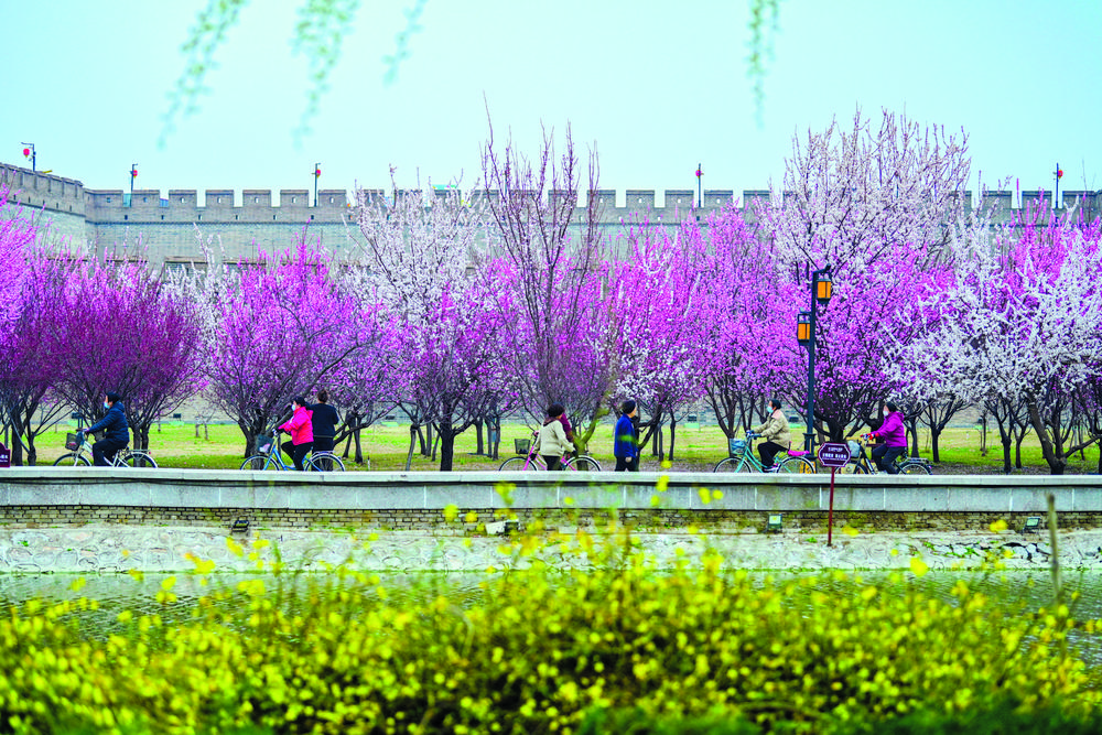 人们在河北省石家庄市正定古城踏青赏花。记者 张晓峰 摄
