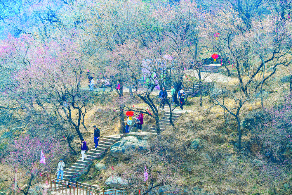 石家庄市植物园内,近千株梅花迎来盛花期。宫粉、玉蝶、绿萼、朱砂等十余个品种陆续开放,红的热烈、白的素雅、粉的娇柔,暗香浮动,沁人心脾。漫步梅园小径,花瓣轻摇如蝶舞,落英纷飞间宛若花雨,清晨薄雾与午后暖阳下,皆是拍照打卡的绝佳时刻。