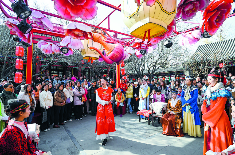 春节假期,河北省石家庄市正定县荣国府景区举办了丰富多彩的文化活动,“一梦入红楼”实景演出、传统民俗表演等活动让游客在欢乐中度过新春佳节。(来源:石家庄日报)