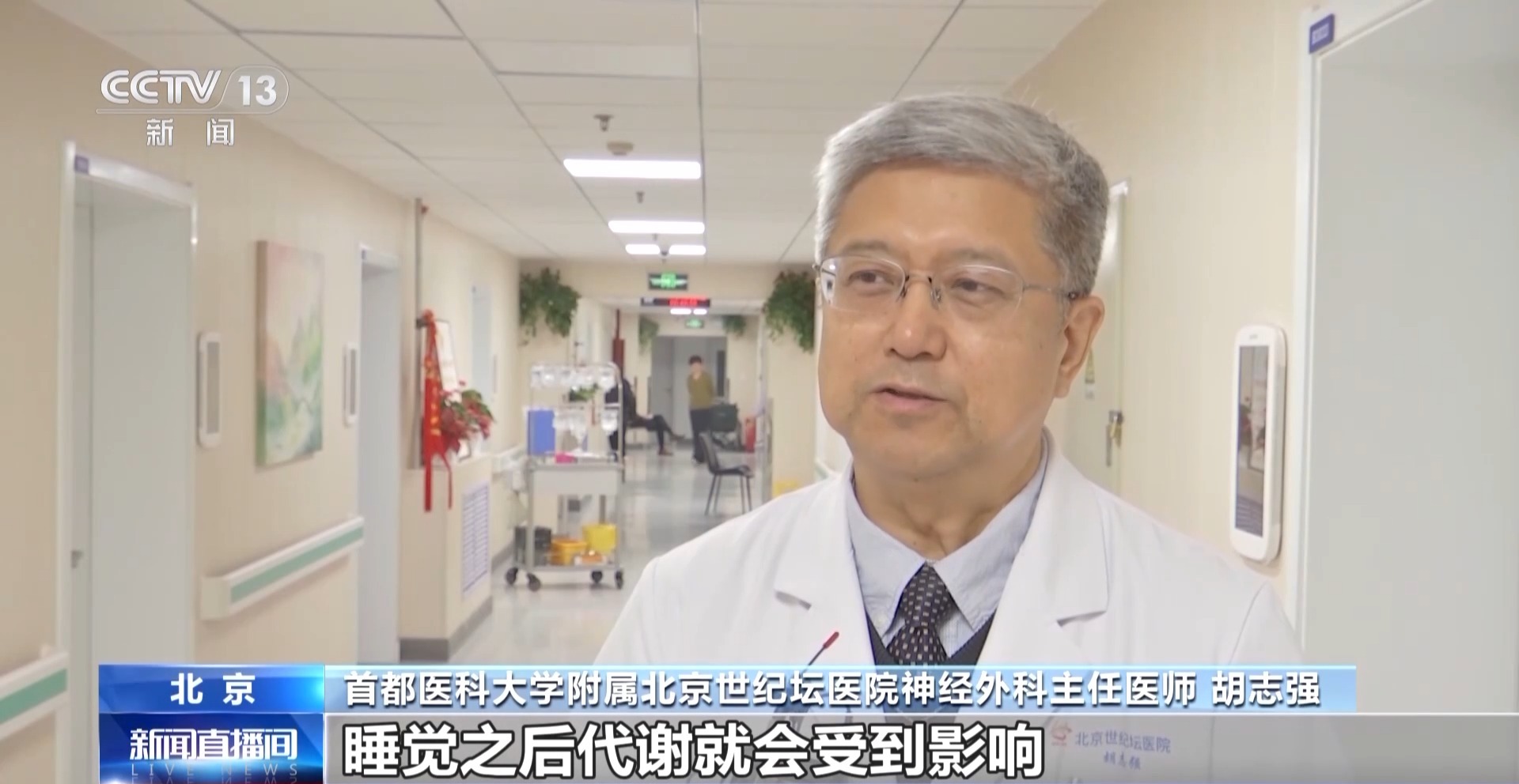 首都医科大学附属北京世纪坛医院神经外科主任医师胡志强:现在有一个“疲劳肥”。就是工作到很晚了,暴饮暴食一顿,结果就睡觉了。睡觉之后代谢就会受到影响,就容易产生血压高,血脂高,血糖的变化。再自己不注意规律生活,不控制血压,不注意锻炼,这样就发生卒中的风险多了。我救治的脑出血患者最年轻的16岁,高血压脑出血,他一出血之后就偏瘫了,失语了。