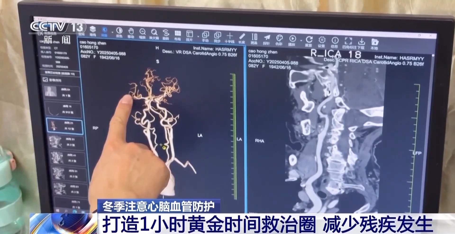 1月19日以来,辽宁沈阳最低气温下降到-25℃左右。73岁的杨女士突发脑梗死,被紧急送往中国医科大学附属第一医院。经过静脉溶栓治疗,目前病情平稳。