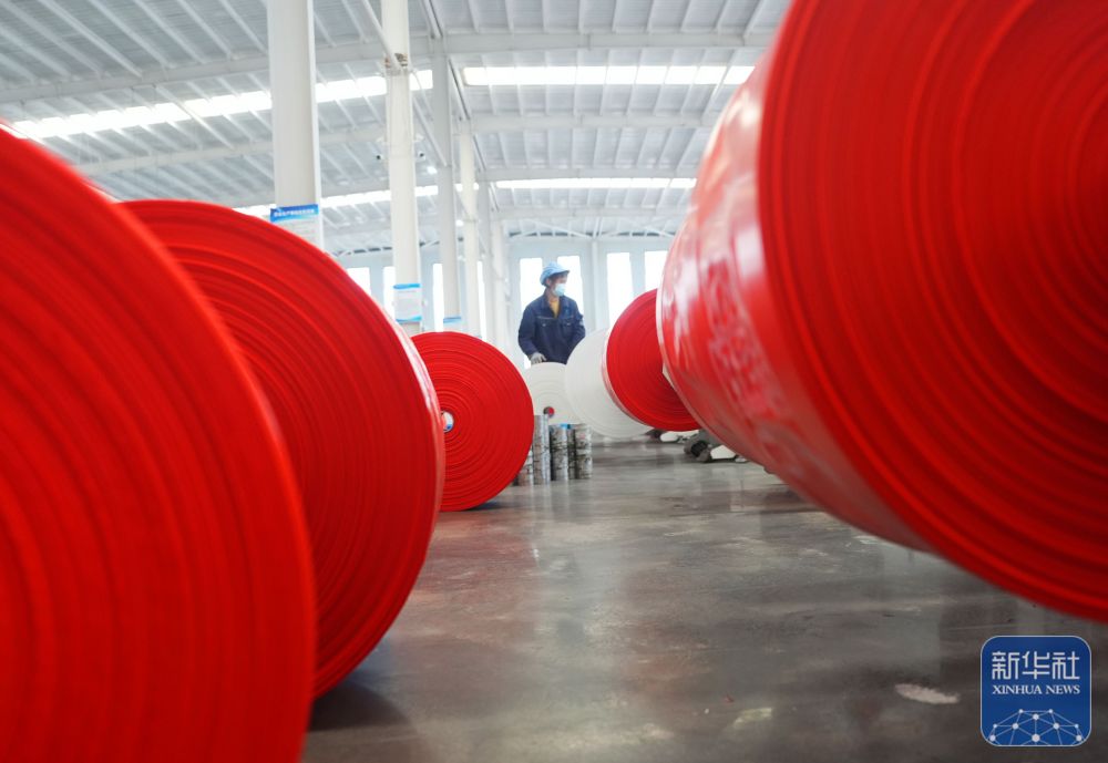 ↑ 2月24日,在湖南省衡山县衡山高新技术产业开发区,荣宸塑业有限公司的员工在生产线上工作。新华社发(曹正平摄)