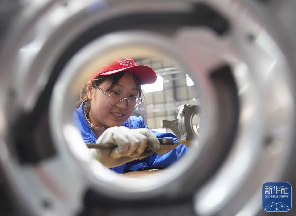 ↑ 2月24日,在湖南省衡山县衡山高新技术产业开发区,湖南嘉力机械有限公司员工在生产线上工作。新华社发(曹正平摄)