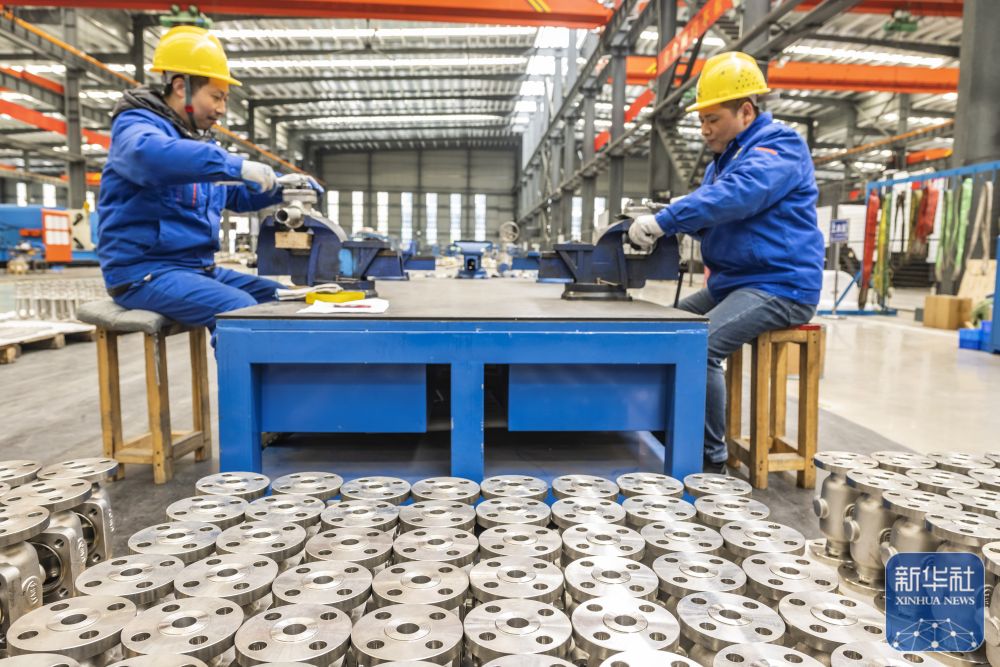 ↑ 2月24日,工人在湖北省宜昌市秭归县湖北泰和流体控制技术股份有限公司车间忙碌。新华社发(郑家裕摄)