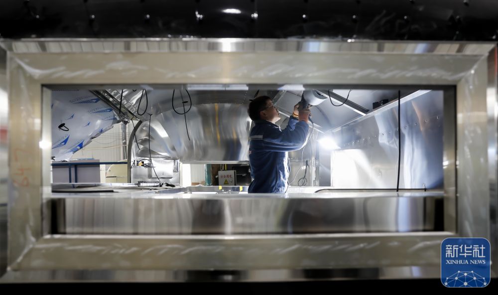 ↑ 2月24日,在河南省武陟经济技术开发区的河南威百特智能装备有限公司生产车间,工人在生产中置轴餐车。新华社发(王琳锋摄)