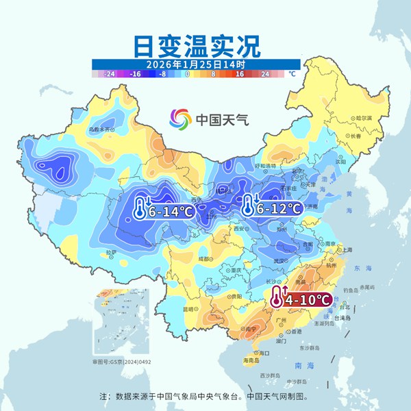 第一波冷空气,影响时段25日至27日:中东部地区降温3~6℃、局地8℃以上。