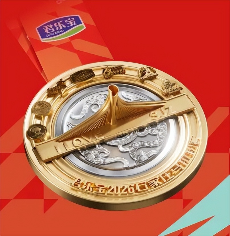 奖牌背面,复兴大街滹沱河大桥与夔龙玉佩纹样相映成辉,传统文化与现代地标交织辉映,既展现历史厚度,也展现时代速度。