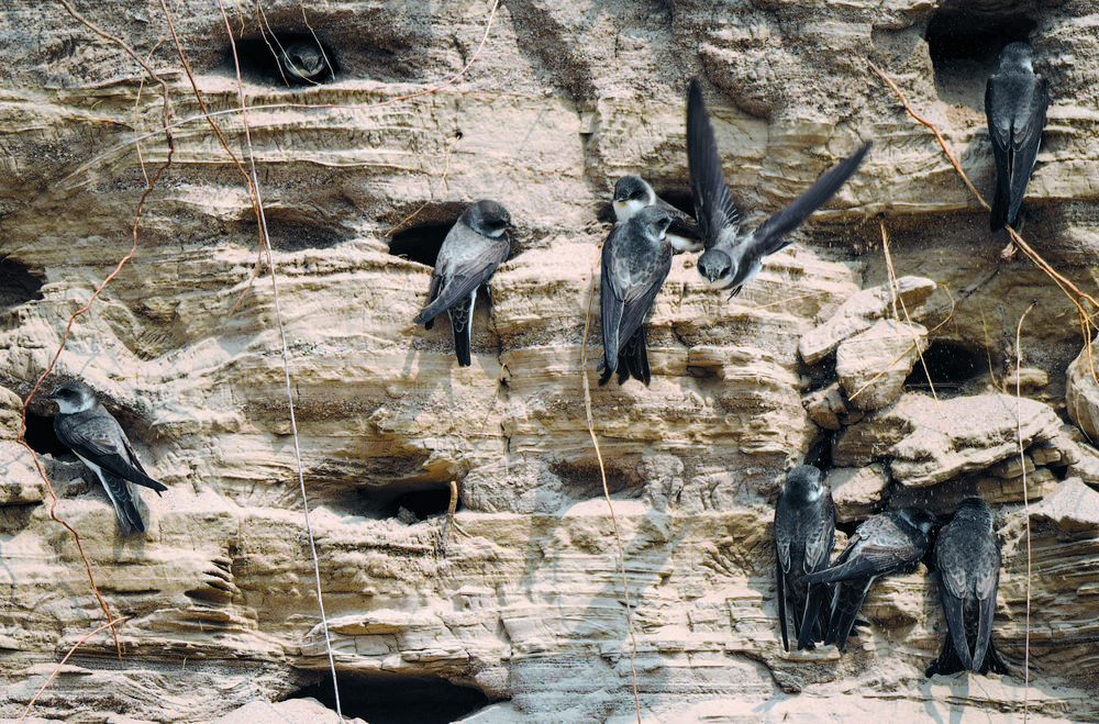 4月9日,崖沙燕在垂直沙质崖壁上筑巢。记者 张晓峰 摄
