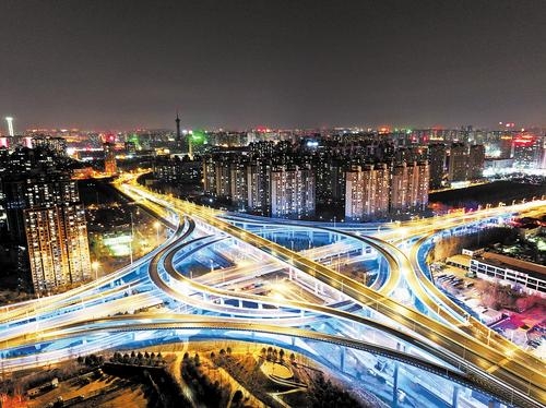 近日航拍的裕翔街与南二环互通立交夜景。(资料片) 图片来自石家庄经济高质量发展和城市更新图片展