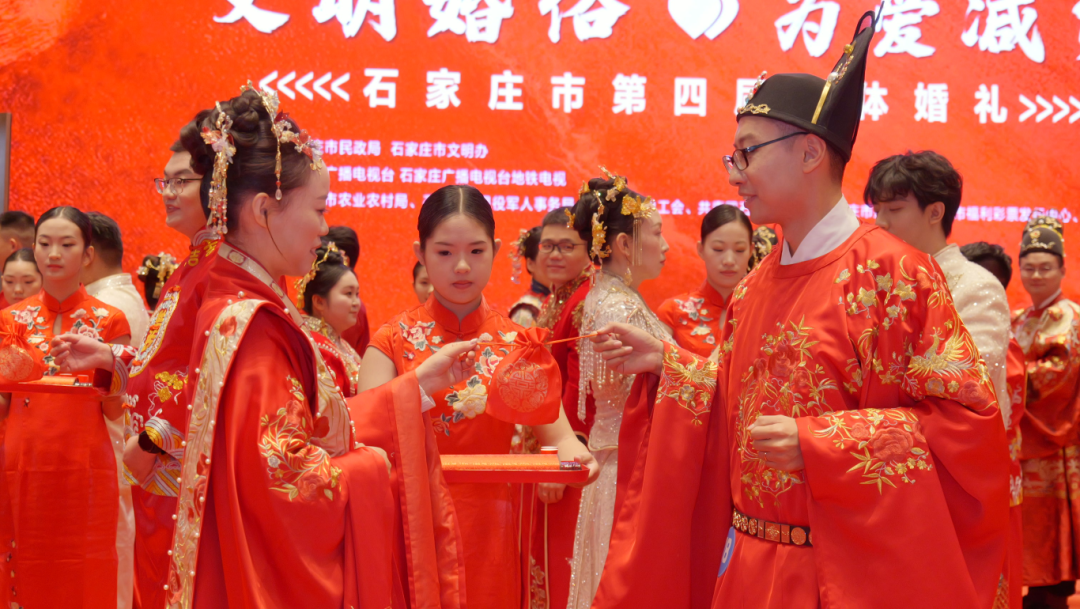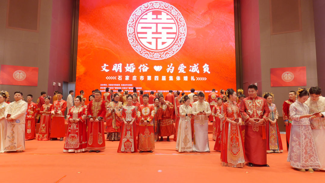 本届集体婚礼首次创新采用宋代婚礼制式,风格简约典雅,仪式庄重温馨。活动由石家庄市民政局与石家庄市文明办共同主办,石家庄广播电视台承办,并联合石家庄市农业农村局、石家庄市退役军人事务局、石家庄市总工会、共青团石家庄市委、石家庄市妇联、石家庄市福利彩票发行中心、石家庄文旅投集团等多部门协办。各方协同联动,共同倡导移风易俗,弘扬文明婚礼新风尚。