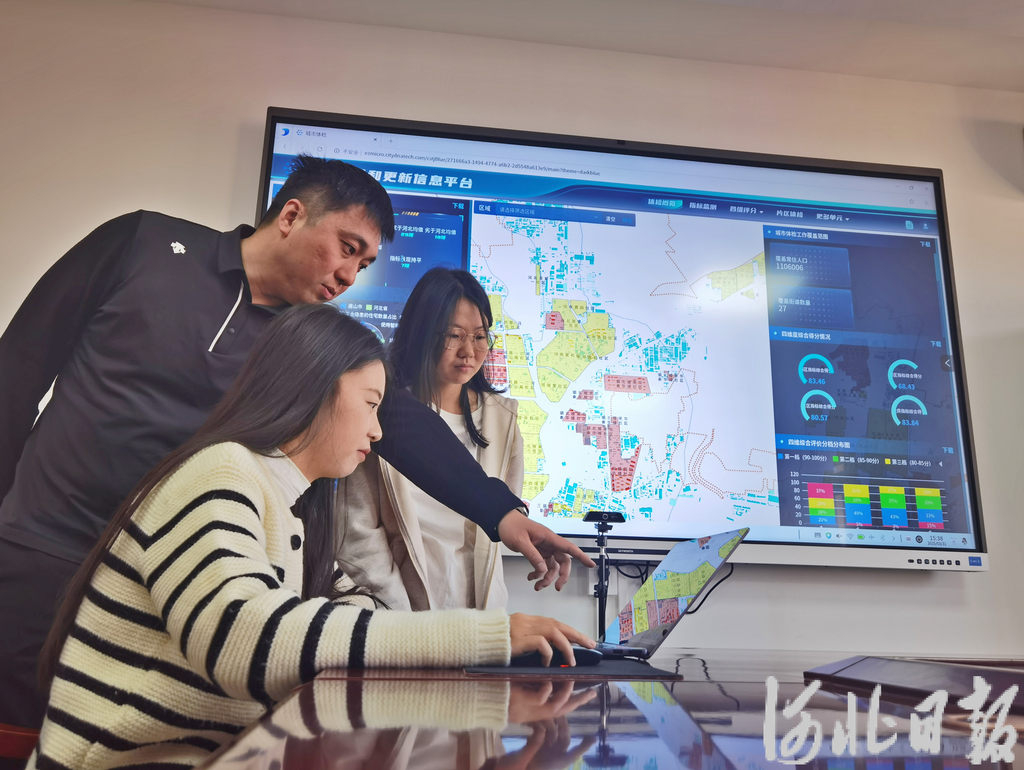 唐山市住建局工作人员利用城市体检和更新信息平台,分析城市体检中发现的问题。河北日报资料片